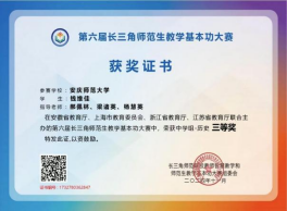 日前,第六届长三角师范生教学基本功大赛决赛(安徽芜湖)落下帷幕,beat365官网历史学(师范)2023级钱维佳获得2024年安徽省高等学校教学技能大赛二等奖和长三角师范生教学基本功大赛三等奖。竞赛于2024年9月启动,先后包括校赛、省赛、全国决赛。竞赛参赛单位分别来自长三角三省一市多所院校,参赛院校数与选手数均创历史新高。