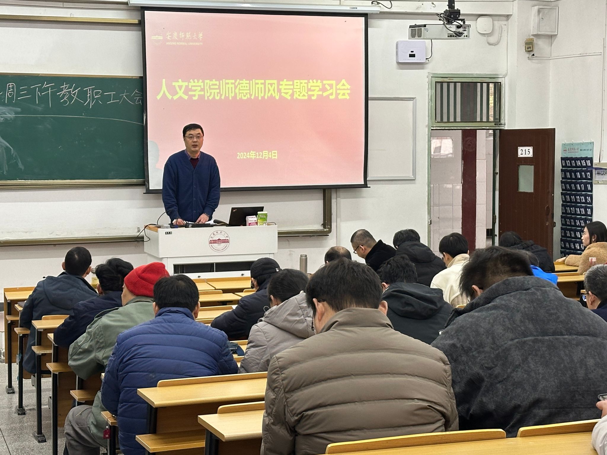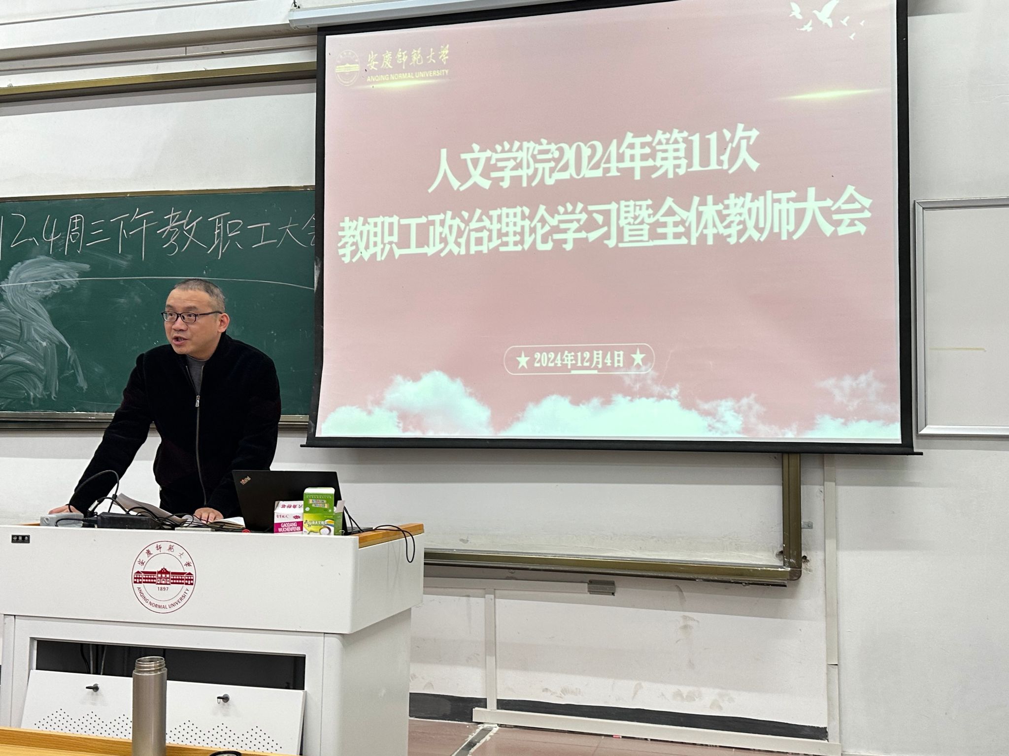 12月4日,beat365英国官方网站召开2024年第11次教职工政治理论学习会暨全体教师大会。院长汪孔丰主持会议,学院领导班子,全体教职工参加会议。