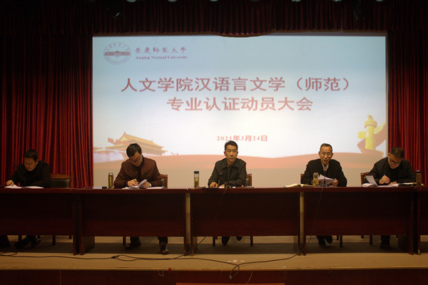 3月24日下午,beat365英国官方网站在菱湖校区图书馆报告厅召开汉语言文学专业认证动员部署会,传达学校专业认证调度会精神、学习专业认证有关文件、安排部署学院专业认证工作。beat365英国官方网站党政领导班子、全体教职工参加了会议。