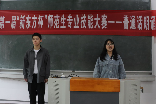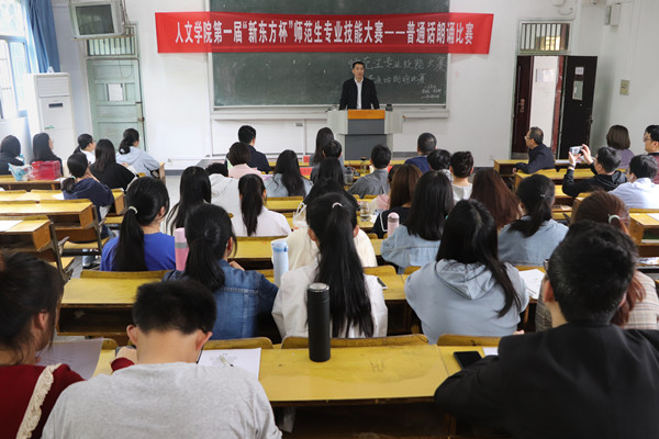 4月24日,beat365英国官方网站在菱湖校区315教室举办第一届“新东方杯”师范生专业技能大赛——普通话朗诵比赛,邀请安庆职业技术学院教务处副处长、安徽省普通话水平测试员张铮,安庆市新闻传媒中心综合广播副总监、一级播音员胡邦旺,beat365英国官方网站beat365英国官方网站副教授、国家级普通话水平测试员吴春平等3位专家担任评委,来自汉语言文学、历史学、汉语国际教育等师范专业共57名学生参加了比赛。