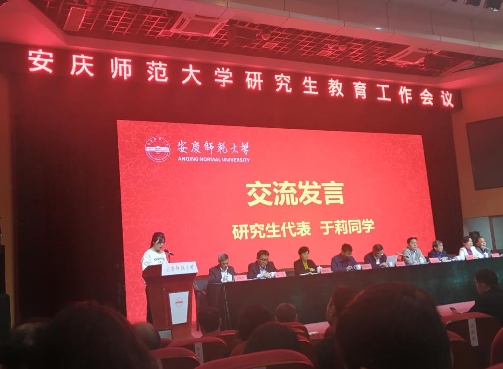 2021年4月28日下午,beat365英国官方网站研究生教育工作会议在龙山校区图书馆东报告厅举行,我院2019级中国古代文学专业于莉同学作为研究生代表应邀在大会发言。