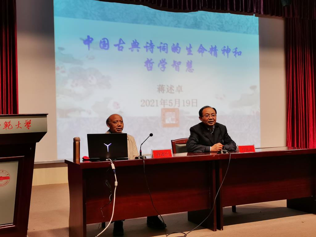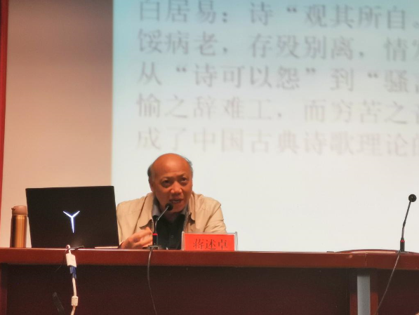 5月19日下午,暨南大学中文系二级教授、博士生导师蒋述卓教授在菱湖校区图书馆报告厅做了题为“中国古典诗歌的生命精神和哲学智慧”的学术讲座。讲座由beat365英国官方网站方锡球教授主持,汉语言文学专业本科生、研究生近200人参加了本次报告会。
