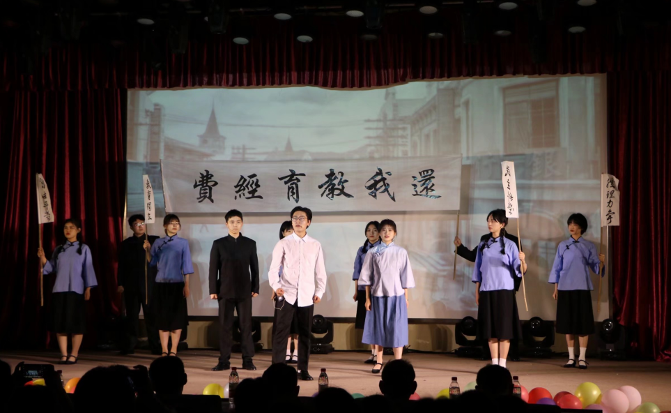 课堂中表明远大志向、街头上索要教育经费、监狱里唾弃同窗叛徒……从三月份开始筹备,话剧社的二十余名学生们已经将这些场景演绎了数遍,表演时长也逐渐从十几分钟补充完善至半小时,他们在前期表演成果的基础上开展二次创作,讨论剧本情节,扩充剧情内容,对待排练的细节毫不含糊。