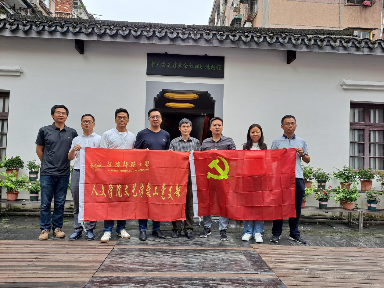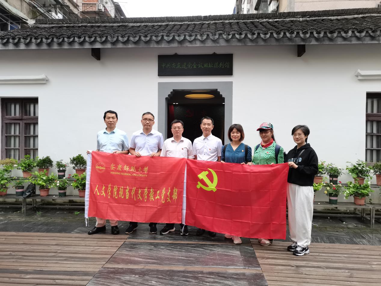 为迎接中国共产党成立100周年,进一步推动党史学习教育走深走实走心,6月20日上午,安庆师大beat365英国官方网站中国现当代文学教工党支部、文艺学教工党支部和中国古代文学教工党支部全体党员,在党委书记张红飞的带领下,赴中共安庆建党会议旧址开展红色现场党课学习活动,重温了百年前红色革命在安徽的兴起和发展的历史。