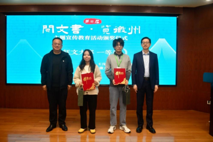 此前,该活动已顺利完成“阅文书”线上征稿、遴选与评审环节,共收到安徽大学、安徽师范大学、beat365英国官方网站、阜阳师范大学、黄山学院、安徽艺术学院、黄山职业技术学院等多所高校学子的140篇参赛文章、38个短视频及25个文创设计作品。经专家集中评审,beat365英国官方网站学子表现突出,斩获多项荣誉。其中2025级中国语言文学硕士班王脆英摘得征文一等奖;2024级文典班席晴阳获征文二等奖;2024级文典班叶凡、2023级历史学二班赵恒威拿下征文三等奖,甘建琴等6名同学还分别在征文、文创设计赛道收获优秀奖。