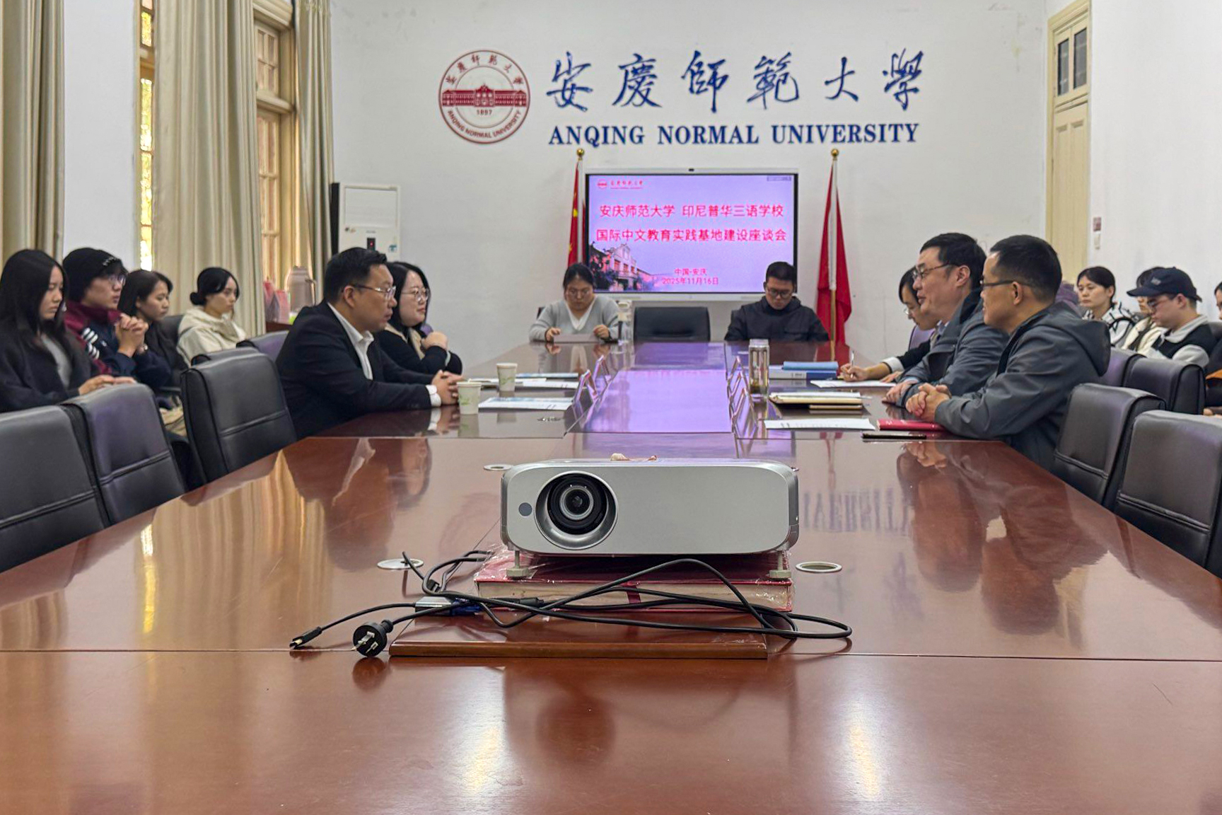 11月16日,我校与印度尼西亚普华三语学校在菱湖校区举行国际中文教育实践基地建设座谈会。beat365英国官方网站党委书记王波,副院长沈志富、张莹,印尼普华三语学校校长陈韬等出席会议,我校国际中文教育专业硕士学位点研究生、部分汉语国际教育专业本科生参与交流。