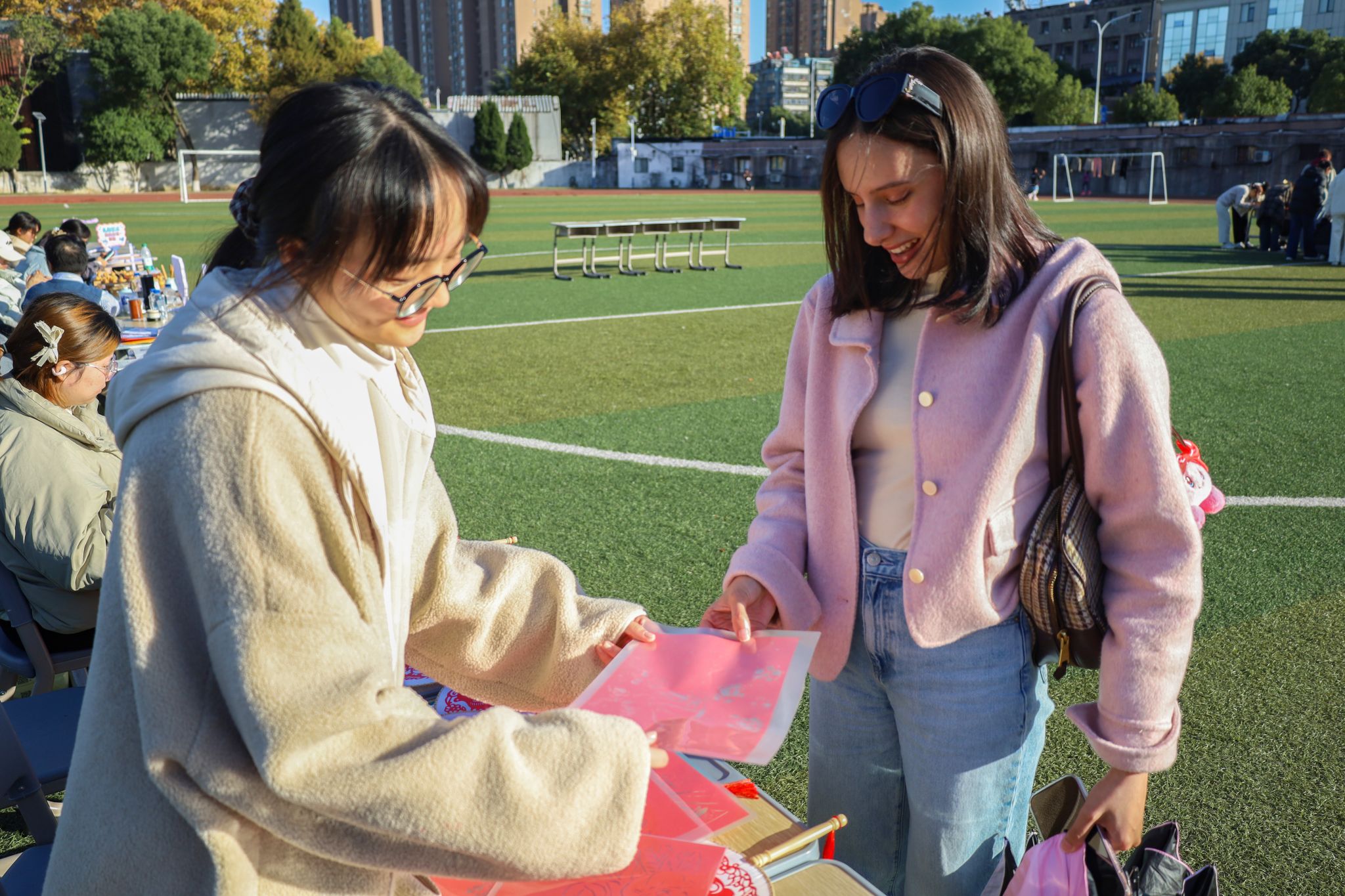 互动体验区同样热闹非凡。中国结编织摊位前,学子手把手传授编织技巧,让传统手工艺在指尖传承;茶艺体验区里,突尼斯研究生安美乐精准答出“红茶的英文名是 black tea”,在趣味问答中感受中国茶文化的国际传播力;扎染、烙画、汉服展示等展台前,中外学生驻足观赏、交流探讨,在亲身体验中拉近文化距离。活动负责人、beat365英国官方网站团委老师表示:“国际中文教育不仅是语言教学,更是文化传播的重要载体。我们希望通过文化节这样的平台,让中华文化走出去、让世界文化走进来,培养更多促进文明互鉴的‘文化使者’。”