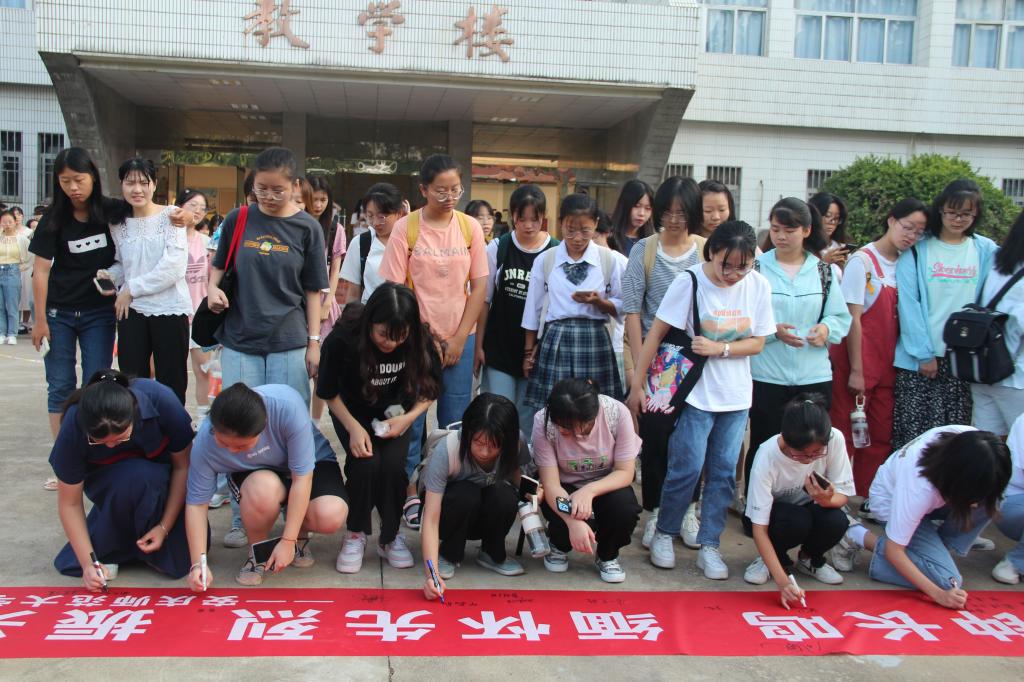 为了缅怀先烈,同学们低头肃立,全体默哀,致敬九一八事变烈士们。默哀仪式结束后,全体同学在准备好的横幅上签名或是留下自己的感悟。一时间,他们纷纷写下了自己的感悟,有对革命先烈的缅怀,有对历史的铭记,也有对伟大祖国的赞美。