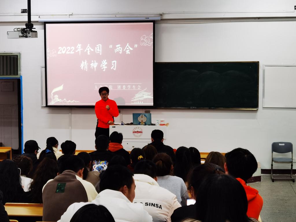 会上,刘旭婷老师向大家介绍了今年全国“两会”召开的时代背景,传达了全国两会精神。会议认为,2022年是落实“十四五”规划的关键之年,我国正昂首阔步,踏上全面建设社会主义现代化国家的壮丽新征程。会议要求,广大团员青年要时刻保持政治敏感性,主动关心国家大事,关心国情社情;努力学好专业知识,提升专业技能,提高综合素质,把自己锻炼成德智体美劳全面发展的时代新人,为全面建设社会主义现代化国家贡献青春力量。