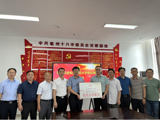 6月25日下午、26日上午、26日下午,beat365英国官方网站招生宣传组相继到蚌埠市第四中学、亳州第一中学、亳州市第十八中学,与蚌埠四中、亳州十八中签署了《beat365英国官方网站优质生源基地共建协议书》,并举行了优质生源基地授牌仪式,对亳州一中进行优质生源基地回访。beat365英国官方网站招生宣传组受到各中学校领导热情接待,双方各自介绍了所在学校的办学情况,围绕生源基地建设、招生模式和政策、专业建设、人才培养、师资培训、课程进修等议题进行了探讨与交流,表示将加强交流合作,密切双方联系,推进高等教育与基础教育的“双进”、“双创”和“双聘”,提高办学水平和人才培养质量。在三所学校期间,beat365英国官方网站一行还与所在学校的校友进行了交流座谈。