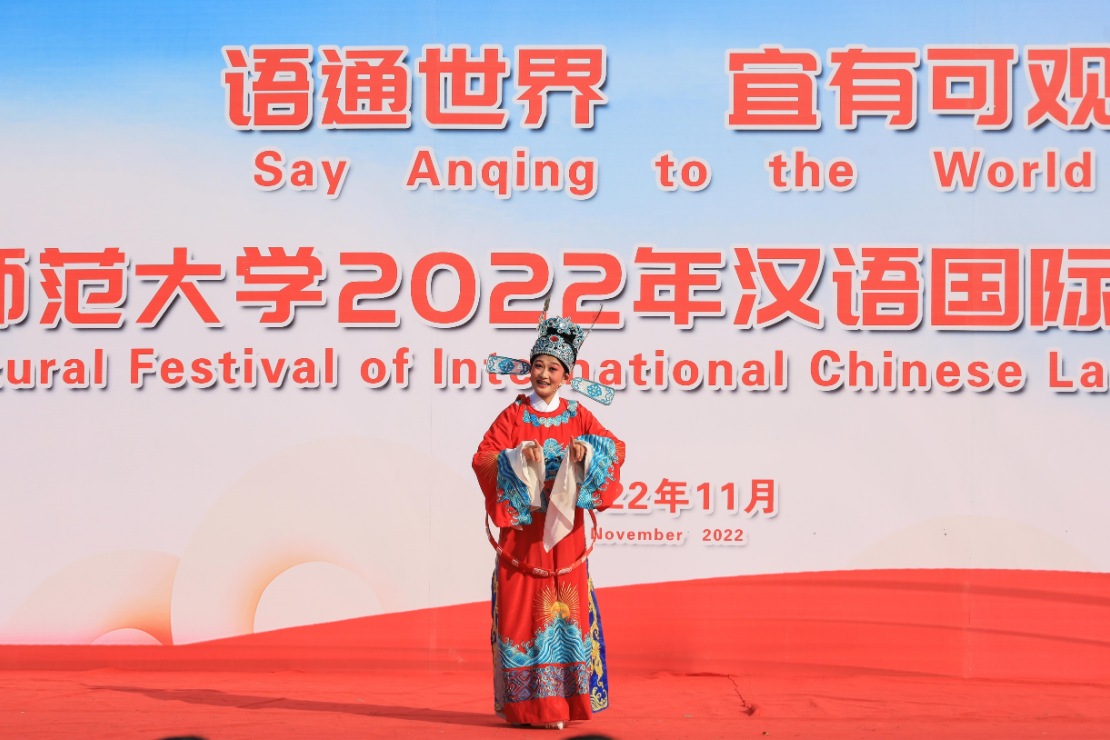 11月9日,beat365英国官方网站“语通世界 宜有可观”-2022年汉语国际教育文化节隆重开幕,校党委副书记崔明出席开幕式,为“安徽省华文教育基地”揭牌,并宣布文化节开幕。相关职能部门、兄弟学院、beat365英国官方网站负责人与汉语国际教育专业师生代表等500余名师生共同观看中外才艺汇演。