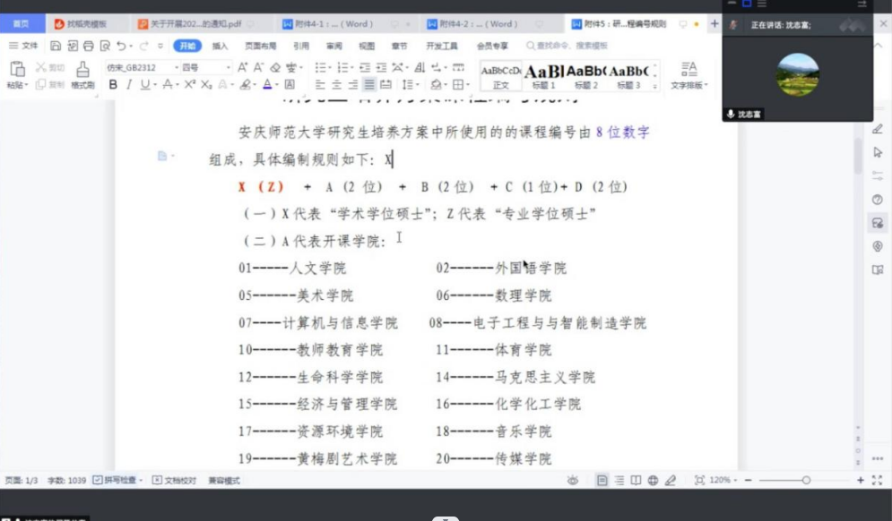 12月2日晚,beat365英国官方网站通过线上方式召开2023版研究生培养方案修订工作推进会。中国语言文学、中国史、学科教学(语文)、学科教学(历史)、汉语国际教育等五个学位点研究生培养方案制(修)订工作小组成员参加会议,副院长沈志富主持会议。
