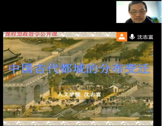 为深入学习宣传贯彻党的二十大精神,落实立德树人根本任务,在具体教学中引导学生更深刻地了解历史、认识现实,推进省级一流本科专业建设,12月8日beat365英国官方网站历史学专业两个教师党支部联合开展了一次课程思政教学公开课活动,分别由省级课程思政示范课程《中国历史地理》负责人、中国古代史教研室沈志富老师和《中华人民共和国史》课程主讲、中国近现代教研室主任郝佩林老师进行教学展示。学院副院长周红兵、学校教学督导员、历史学专业教师党支部书记、教研室主任、部分骨干教师以及2020级历史学本科生观摩了教学活动。因受疫情影响,活动采取线上教学形式。