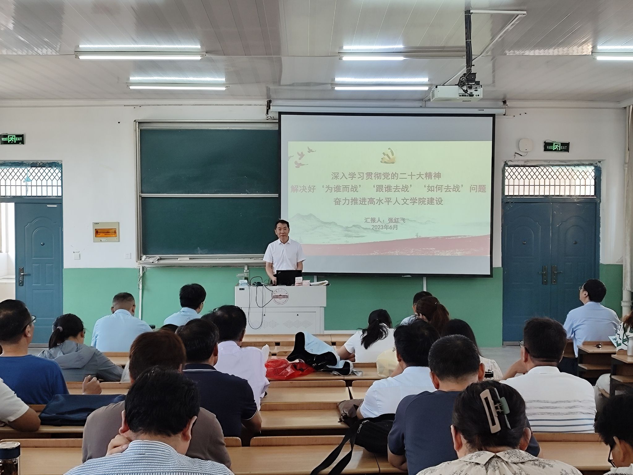 七一前夕,beat365英国官方网站党委书记张红飞以“深入学习贯彻党的二十大精神 解决好‘为谁而战’‘跟谁去战’‘如何去战’问题 奋力推进高水平beat365英国官方网站建设”为题为全体教职工讲授主题教育专题党课。