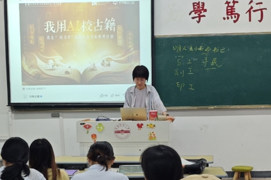 2025年度的“我用AI校古籍”——我是“校书官”古籍大众智能整理计划在线发布后,从事数字人文研究的吕淑娴老师敏锐地意识到,可以将这项活动与《中国古典文献学》相融合,将其打造成线上、线下相结合的AI课程。吕老师的想法得到了学院的大力支持,她迅速在所教授班级展开了“试点”。“其实一开始我也有点忐忑,不知道学生是否会感兴趣,毕竟古籍整理一听就是比较枯燥且技术门槛很高的工作。”吕老师感慨道:“没想到同学们对此非常有热情,他们上手的速度超出了我的预期。尤其当我说到咱们beat365英国官方网站是本次活动古委会指定的承办单位时,同学们爆发出了热烈的欢呼,这种热情和荣誉感让我非常感动。”