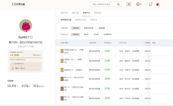 活动进行两个月来,已有多个班级深度参与到了古籍智能整理中,累计校对、整理古籍达三百余万字,为“识典古籍”智能整理平台贡献了一份重要的“安庆师大力量”。有的同学课上学习完技术要领后,一下课就“沉迷”到古籍整理中,由“菜鸟”迅速成长为“老手”;也有其他班级的同学在舍友影响下,对这项活动产生了兴趣,OCR校对的“升级”、“授勋”取代了原本网游升级的成就感。2023级汉语言文学专业的刘珊珊同学说:“在使用识典古籍校勘古书时,我学到了古字的多种写法,有利于帮助我理解古籍。同时,我也收获了古籍整理的成就感,锻炼了自身的专注力。”同班的刘婷玉同学也分享了自己的感受:“我一直认为古籍校勘离我很遥远,但接触识典古籍校勘后,随着校对的古籍数目越来越多,我从起初的生疏到熟练,更收获了意想不到的乐趣。校勘古籍不仅丰富了我的文化知识,也提升了我的校勘技能。能够为中华优秀传统文化的传承贡献一份力量,我感到非常骄傲与自豪。”