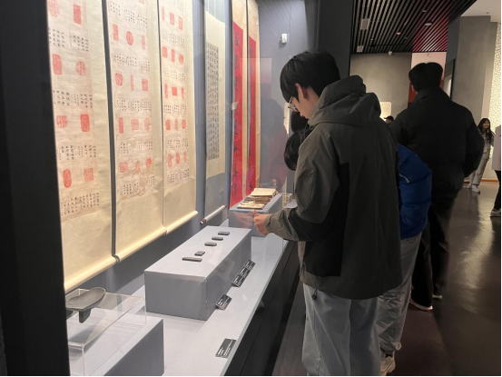 怀宁县博物馆基本陈列丰富,包括《怀古溯源 史海洪宁—怀宁县古代文明展》、《孙家城遗址专题展》和《“鱼米之乡”农具文化展》。学生们在讲解员的引导下参观了怀宁县博物馆的各个展厅和藏品,包括镇馆之宝北宋人形壶、唐打马球镜和春秋青铜匜。