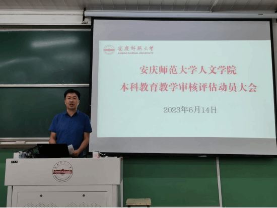 为贯彻落实《beat365英国官方网站本科教育教学审核评估工作方案》(校政字[2023]14 号)以及学校本科教育教学工作会议暨教育部新一轮本科审核评估动员大会精神,有序推进本科教育教学审核评估工作的开展,6月14日下午,beat365英国官方网站在菱湖校区理二阶教室召开了新一轮本科教育教学审核评估动员大会。人文全体教职员工参加会议,会议由教学副院长周红兵主持。